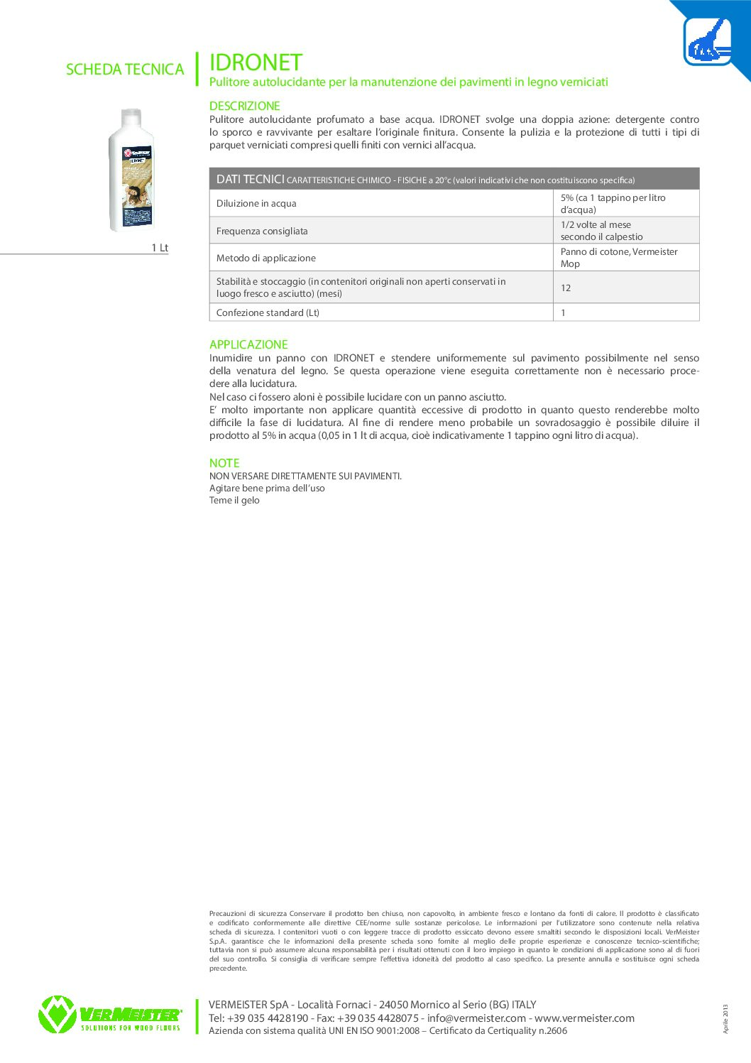 Pulitore autolucidante profumato a base acqua. IDRONET svolge una doppia azione: detergente contro