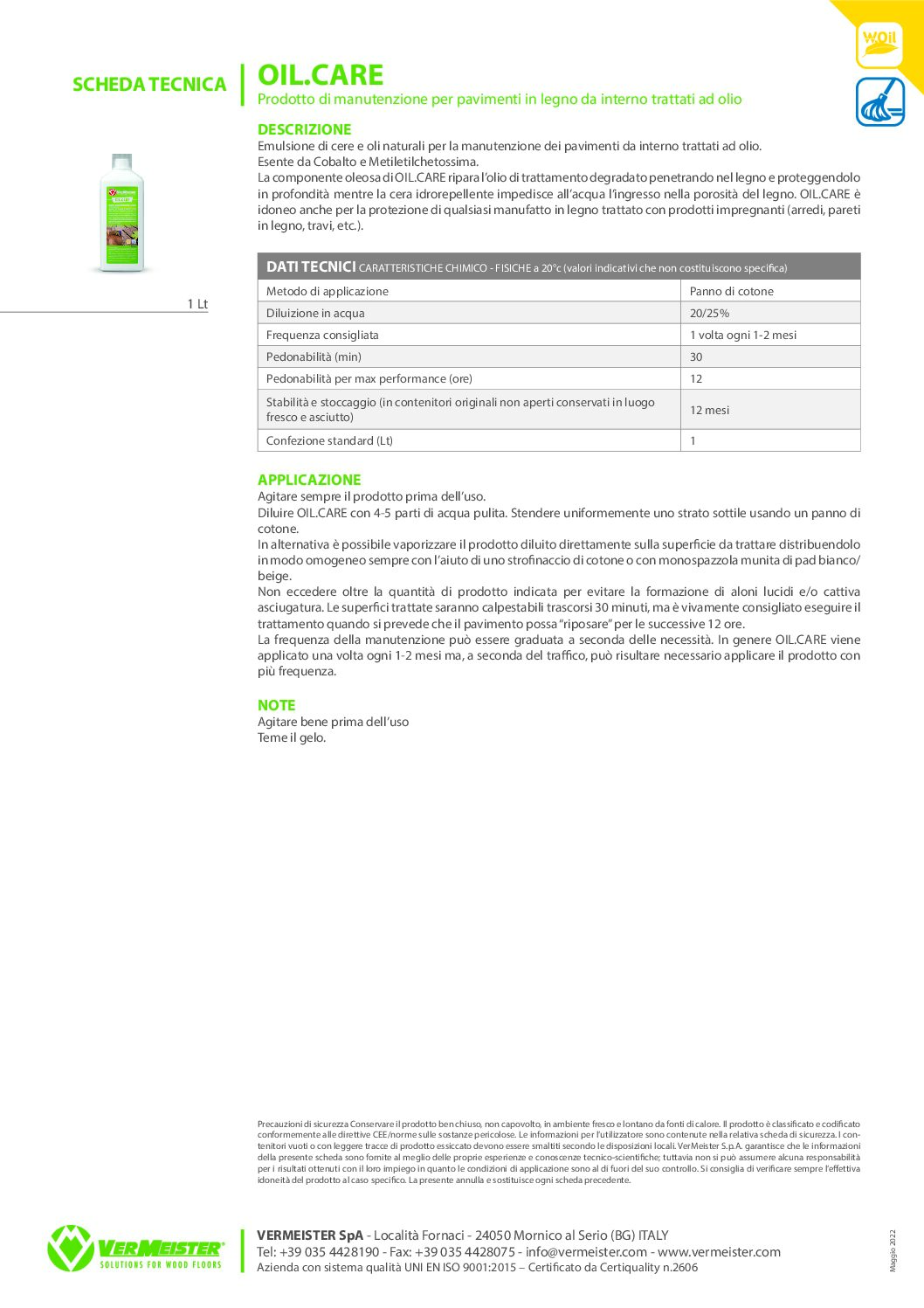 in profondità mentre la cera idrorepellente impedisce all’acqua l’ingresso nella porosità del legno. OIL.CARE è