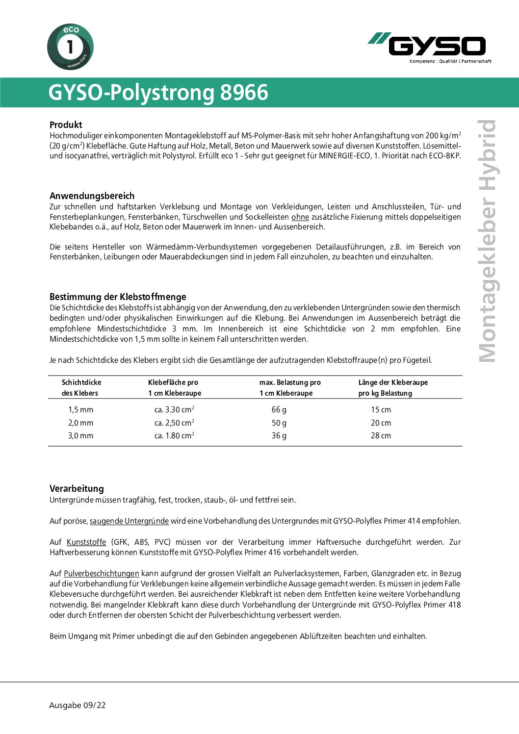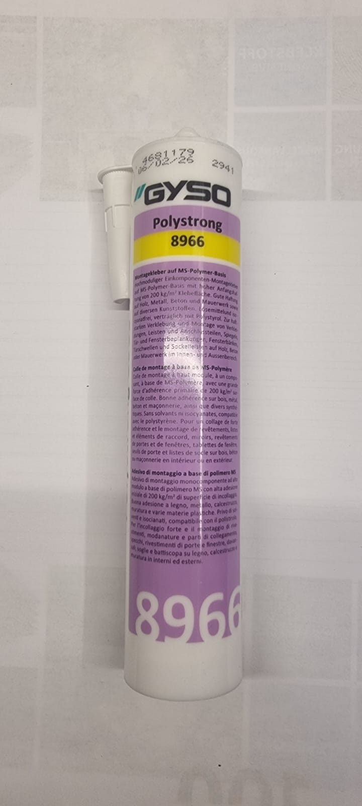 Adesivo di montaggio ad alto modulo a base di MS ibrido con elevata adesione iniziale. Altamente viscoso, permanentemente elastico, carteggiabile, livellante, esente da solventi e isocianati e compatibile con EPS/XPS. Per l’incollaggio affidabile di diversi materiali come legno, metallo, varie materie plastiche su calcestruzzo, muratura, ecc.